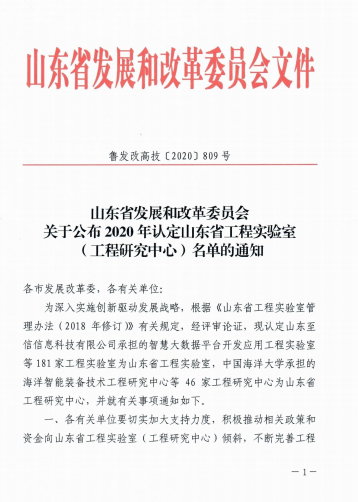 近日,山东省发展和改革委员会公布2020年认定山东省工程实验室(工程研究中心)名单,我校环境与化工学部牵头、太阳成城集团tyc234cc申报的化工资源清洁利用工程实验室被认定为2020年山东省工程实验室。