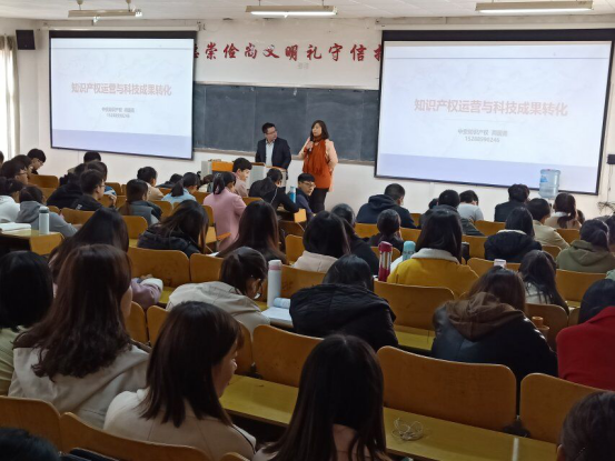 周国勇主要围绕知识产权运营和科技成果转化这两个主题,介绍了外观设计、实用新型和发明三种专利的制度、申请流程、周期及各阶段的注意事项,并有针对性的分析了目前高校专利申请过程中的常见问题。讲座完成后周国勇就师生比较关心的专利申请时机、客体、新创性以及专利在商业中的应用等问题进行了现场解答。