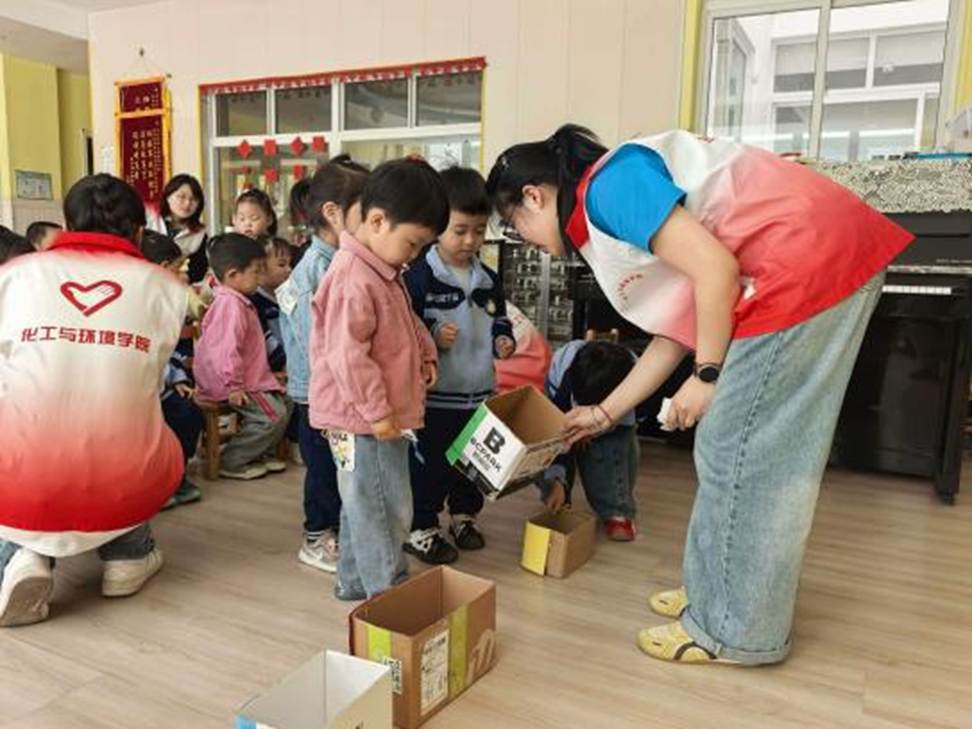 践行科普育人初心,彰显青年学子公益担当,传递“绿色环保、从我做起”理念,4月16日,太阳成城集团tyc234cc心美志愿服务队走进学府书香苑幼儿园,开展“志愿伴成长,实验乐无穷”主题志愿活动。志愿者们通过细致讲解、现场示范与分类实践,引导孩子们正确认识垃圾类别、规范投放垃圾,在童心心间种下环保文明的种子。