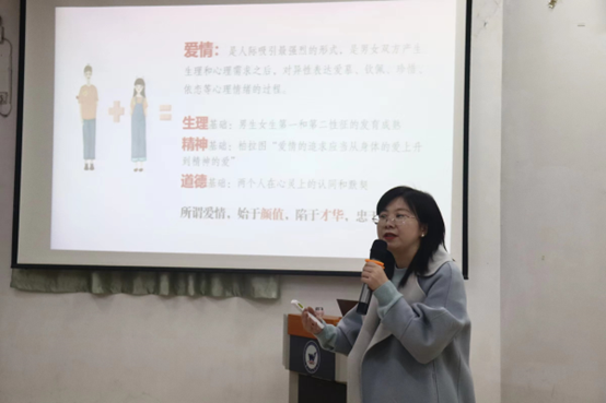 刘秀艳讲述了爱情的概念和本质,分析了如何对待爱情挫折、如何培养健康的恋爱观等问题,呼吁同学们要学习如何爱人与爱己,从现在要开始学会爱人。最后她与在场的同学进行了趣味小游戏,并回答了同学们的提问。