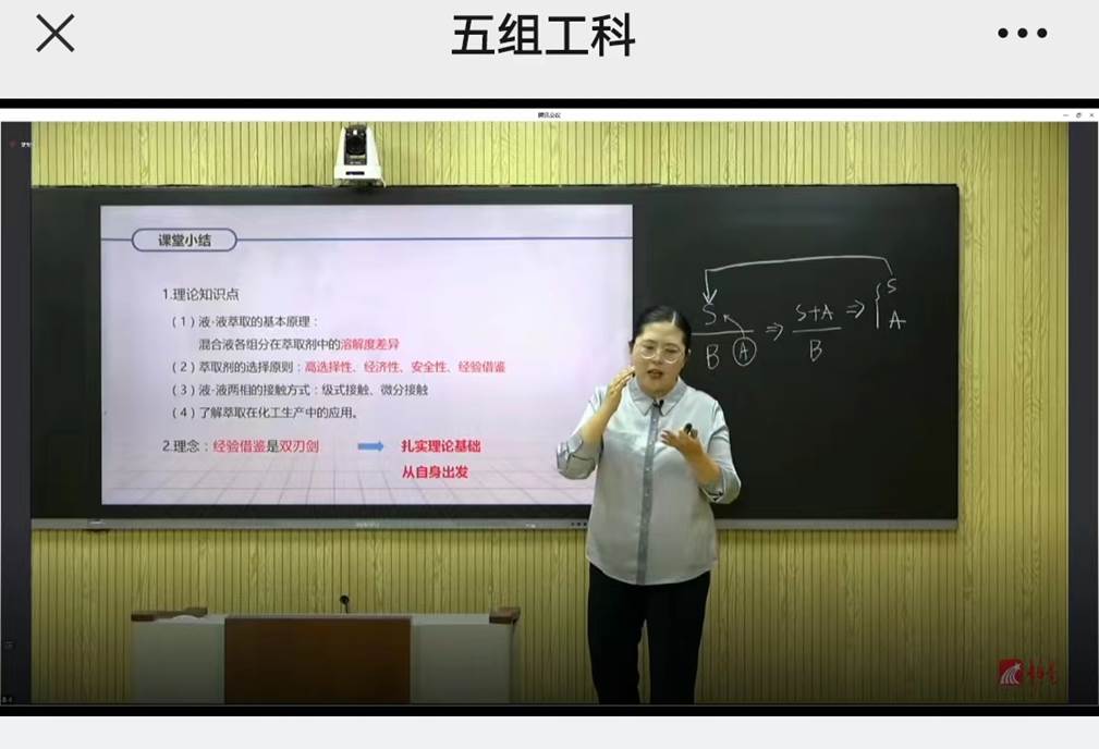 7月24日决赛当天,彭彬老师被分到讲20个节段中的《萃取概述》教学内容。比赛中,彭彬老师用工程的严密性与逻辑性精彩呈现了导课、授课、小结、反思等整个教学过程,赢得专家评委们一致好评。最终,彭彬老师获得工科组一等奖。