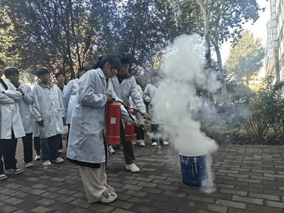 演练前李永威强调了开展消防演练培训的重要性和必要性。模拟演练警报声响起后,同学们在老师指挥下迅速有序撤离至安全地点并清点人数。随后,实训中心老师讲解了火灾起因、危害及预防措施,展示了消火栓、干粉灭火器等消防器材的使用方法并邀请同学体验,同学们踊跃参与。