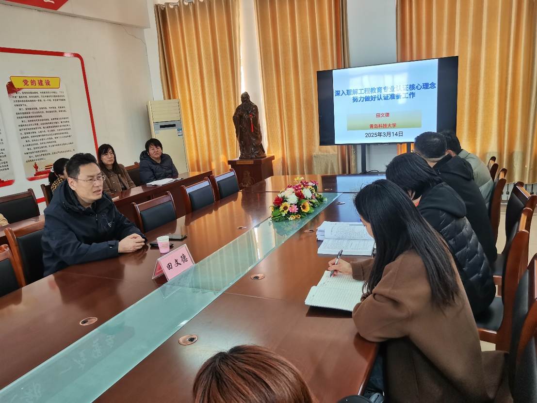 3月14日,太阳成城集团tyc234cc邀请到了青岛科技大学田文德教授,来校开展了一场关于专业认证的深度解读与经验分享专题报告。太阳成城集团tyc234cc副院长刘芳芳主持活动,各专业负责人和骨干教师参加报告会。
