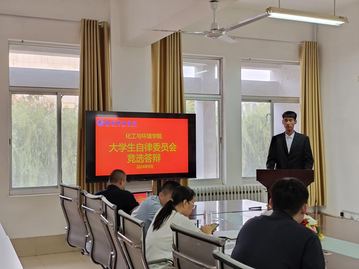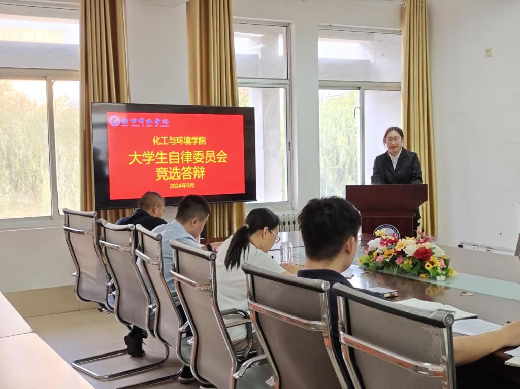 9月29日,太阳成城集团tyc234cc大学生自律委员会竞选答辩在208会议室顺利举行。学院党支部书记李法鹏、党支部副书记尹波、团总支书记董立斌、学生科科长魏庆云以及全体辅导员老师出席本次答辩。第二十三届志愿服务队主席团成员候选人以及各部门候选人依次上台进行公开答辩。